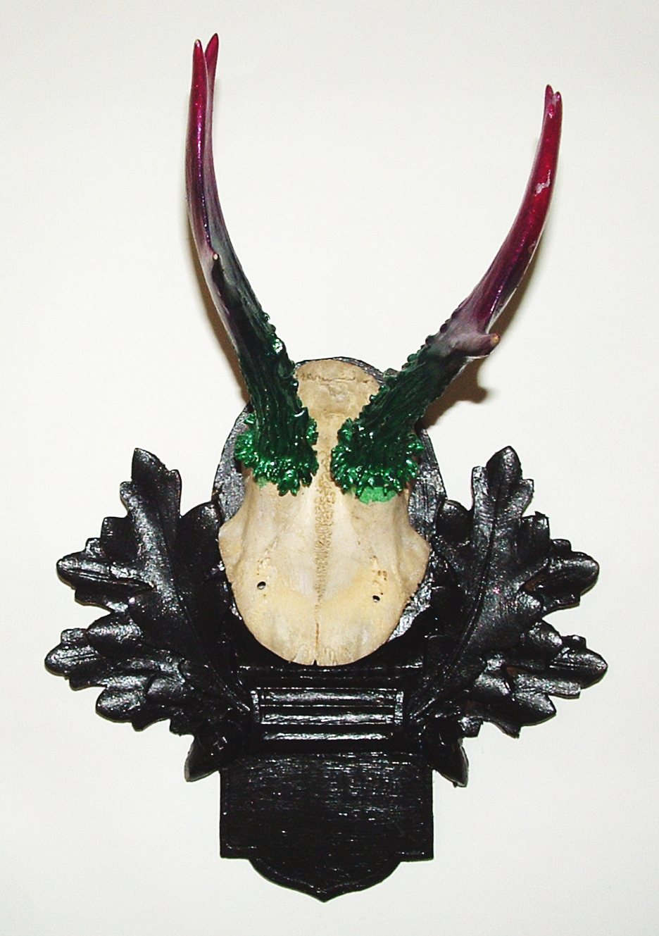 Farben: Pink-grüner Verlauf mit Glitzer-Effekt auf schwarzem Holz
